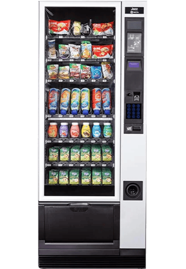 JAZZ de Necta propose un service de rafraîchissement complet adapté aux espaces réduits grâce à son design compact. Cette machine polyvalente offre une large gamme de snacks, confiseries, canettes et bouteilles, avec des modèles disponibles pour les snacks uniquement ou les canettes et bouteilles.